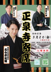 昨年同様、相模原市出身の落語家【古今亭佑輔】さんが正泉寺に来て下さいます。